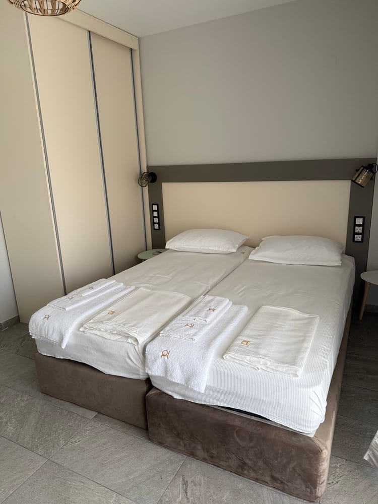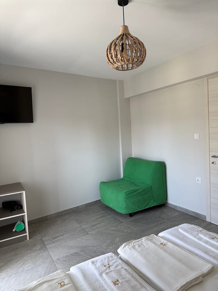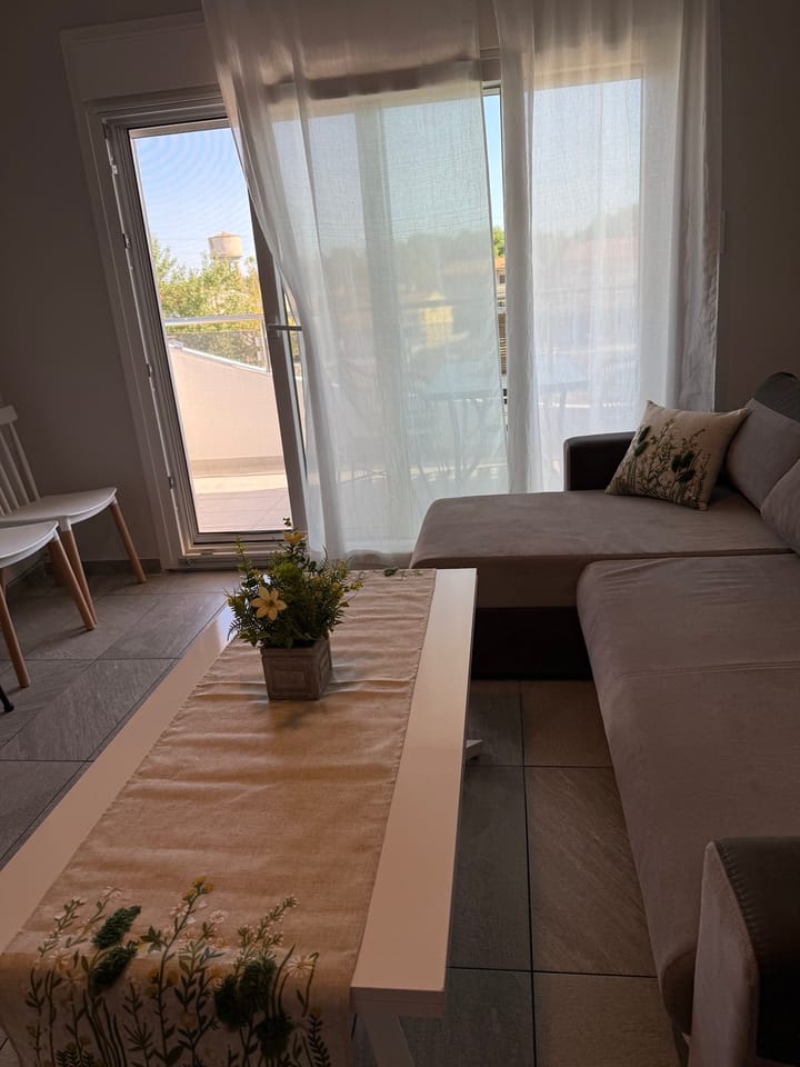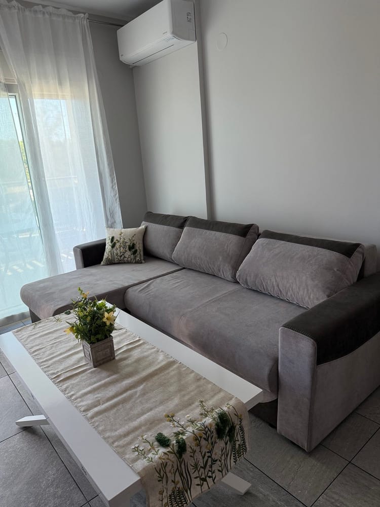 Този уютен и стилно обзаведен апартамент е идеалното място за релакс в сърцето на Керамоти. Със спалня с голямо двойно легло, разтегателен фотьойл и удобен диван във всекидневната, апартаментът предлага комфортно настаняване до 5 души – перфектен за семейства или малки компании.